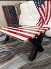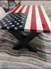 This is a epoxy American flag coffee table, used with real plywood, a real flag covered with epoxy. The legs are made from thin metal.