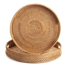 Coffee Table Tray Round Rattan Ottoman Tray Woven Serving Trays with Handles ...