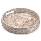 Coffee Table Tray Round Rattan Ottoman Tray Woven Serving Trays with Handles ...