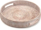 Large Size: 14 inch Diameter x 2.8 inch Height; Package include 1PCS of Circular Tray Material: The tray is made of 100% rattan, hand woven, built in handles for easy carrying and serving The round tray is designed with natural rustic color, simple but elegant design for decoration, fits most home, kitchen, farmhouse, tea room or coffee room Multifunctional: could be used as ottoman / coffee table / side table tray, food / drink / fruit serving basket; Also could simply used on the tabletop or center of kitchen island to holds keys, mail, remote controls, assemble plants, napkins, decorative lantern candles, salt and pepper and other small stuff The rattan tray is very easy to clean, just need wipe clean with damp cloth Product Description DECRAFTS Round Rattan Woven Coffee Table Tray Whitewash Small Size: 11.8 inch Diameter x 2.4 inch Height Medium Size: 14 inch Diameter x 2.8 inch Height Large Size: 16.9 inch Diameter x 2.8 inch Height Material: Made with 100% hand woven rattan material The tray designed with built in handles for easy carrying and serving Package include: 1 x Round Tray Multifunction: Could be used as ottoman / coffee table / side table tray, food / drink / fruit serving basket