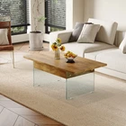 Product Features The glass table legs can be creatively transformed by adding designs such as freehand drawings or stickers (the materials need to be prepared by yourself), turning them into a one-of-a-kind coffee table!!! Modern Home Style: The modern design and multifunctionality of this coffee table make it an ideal choice for contemporary homes, perfectly fitting into both living rooms and offices. Versatile Design: This coffee table comes with an innovative lift top function, allowing you to easily adjust the height to suit different scenarios. This coffee table can serve as a regular coffee table and can be lifted to function as a desk, meeting various needs. Wood Grain Sticker: The tabletop is adorned with a natural wood grain sticker, which is not only aesthetically pleasing but also easy to clean and maintain. Premium MDF Material: The tabletop is crafted from high-quality MDF, with a durable wood grain sticker applied to ensure the table's longevity and stability. Clear Tempered Glass Legs: The table is supported by clear tempered glass legs, with edges finely polished for both stability and a modern look. Non-Slip Feet: Equipped with non-slip feet at the base to ensure the table remains stable during use, enhancing safety. Spacious Storage Space: When the table is lifted, the lower tier offers ample storage space for items like magazines and fruits, keeping the tabletop tidy. Ergonomic Design: The table's height and dimensions are designed according to ergonomic principles, providing a comfortable experience whether used next to a sofa or as a standing desk. Metal Rod Connection: The upper and lower tiers are connected by metal rods, ensuring a stable and sturdy lifting process, extending the table's lifespan. Multiple Color Options: In addition to the classic wood grain sticker, the coffee table is available in a variety of colors to suit different home decor styles. Color Variation Notice: Due to differences in display devices and lighting, there may be a slight color difference between the actual product and the images, which is normal.