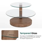 Upgrade your living space with this modern round coffee table that combines functionality with modern design. Featuring a tempered glass top and a sturdy base, this coffee table adds a sophisticated touch to any room while maintaining durability and easy maintenance. Its compact size makes it the perfect small coffee table for apartments, lounges, or cozy corners, while the unique oak base also serves as storage, ideal for keeping magazines, remotes, or other essentials neatly organized. A true modern coffee table, it complements minimalist, Scandinavian, or contemporary décor, making it a versatile centerpiece for your home.