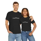 Coffee T-shirt Funny Coffee minimalist shirt coffee lover shirt Women's unisex coffee cute shirts morning coffee tee Shirt The unisex heavy cotton tee is the basic staple of any wardrobe. It is the foundation upon which casual fashion grows. The specially spun fibers provide a smooth surface for premium printing vividity and sharpness. No side seams mean there are no itchy interruptions under the arms. The shoulders have tape for improved durability. .Made with medium fabric (5.3 oz/yd² (180 g/m²)) consisting of 100% cotton for year-round comfort that is sustainable and highly durable. The classic fit of this shirt ensures a comfy, relaxed wear while the crew neckline adds that neat, timeless look that can blend into any occasion, casual or semi-formal. .: The tear-away label means a scratch-free experience with no irritation or discomfort whatsoever. .: Made using 100% US cotton that is ethically grown and harvested. Gildan is also a proud member of the US Cotton Trust Protocol ensuring ethical and sustainable means of production. This blank tee is certified by Oeko-Tex for safety and quality assurance.