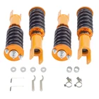Features - 24 Step to adjust soft / hard adjustment according to your preference - Ride Height Adjustable - Drops From 1 to 3 Inch From Factory Ride Height - 55CrSi high strength durable cold wound steel & heat treated coils - Manufactured from high quality T-6061 billet aluminum with an anodized finish for superior strength and corrosion protection. - Improved Handling and stability without premature tire wear - Improved Vehicle Stability and traction in hard cornering situations - Full threaded absorber tube casing for independent height adjustment - Twin-Tube System for Comfortable Ride on Streets Application For Honda Civic / CRX 1988-1991 EE EF EC For Honda Civic 1992-1995 EJ EG EH fork type For Honda Civic 1996-2000 EK For Acura Integra 1990 -1993 DA DB fork type For Acura Integra 1994-2001 Specifications - Front and Rear top mount: rubber - Damping: 24 levels rebound damping adjustable - Spring rate Front: 8 kg/mm (448 lbs/in) - Spring rate Rear: 5 kg/mm (280 lbs/in) - Spring length Front: 180mm - Spring length Rear: 180mm - Adjustable height: lowering 1-3inch - Coilover overall length Front: 365mm-410mm - Coilover overall length Rear: 435mm-480m - Shock type: Twin tube - Spring Preload: 7-10 mm Package included - Complete 2 Front + 2 Rear coilovers - A pair of wrenches for height adjustment - For some vehicles, you will need sleeves and washers that already included in our package.