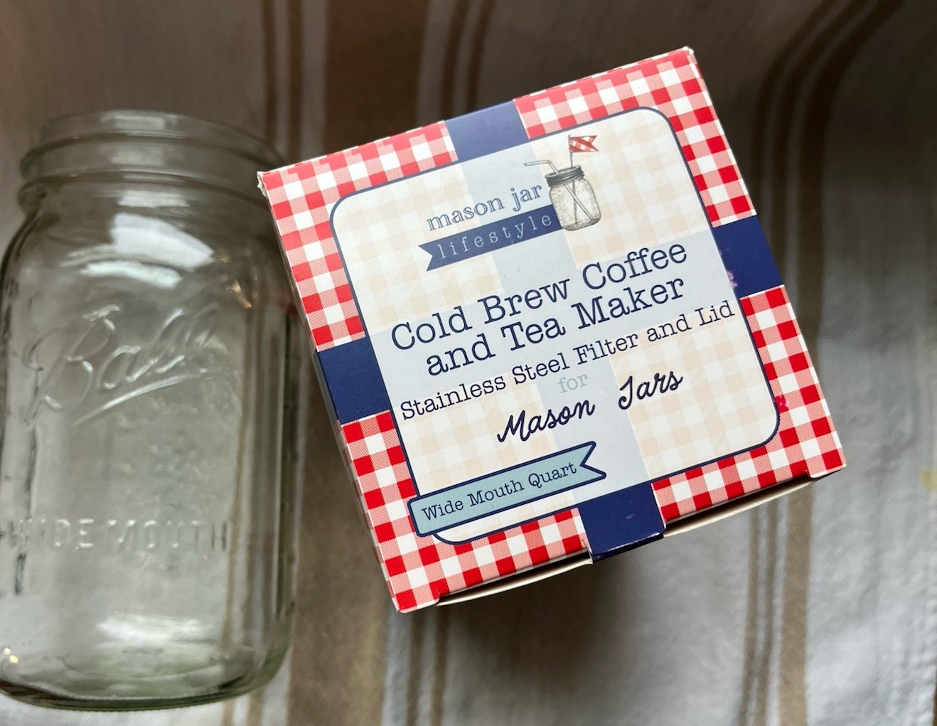 New never used in-box Fine Mesh Strainer Basket for wide mouth quart size mason jars to make your own cold brew coffee and teas at home! The box has directions and information on it to help you so you’ll be ready to start right away. I have used this version and like the results—the mesh is very fine so you won’t end up with gritty coffee or tea. Mason jar is not included, it is in photos for an example of the correct size. Message me if you have questions!