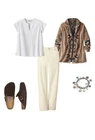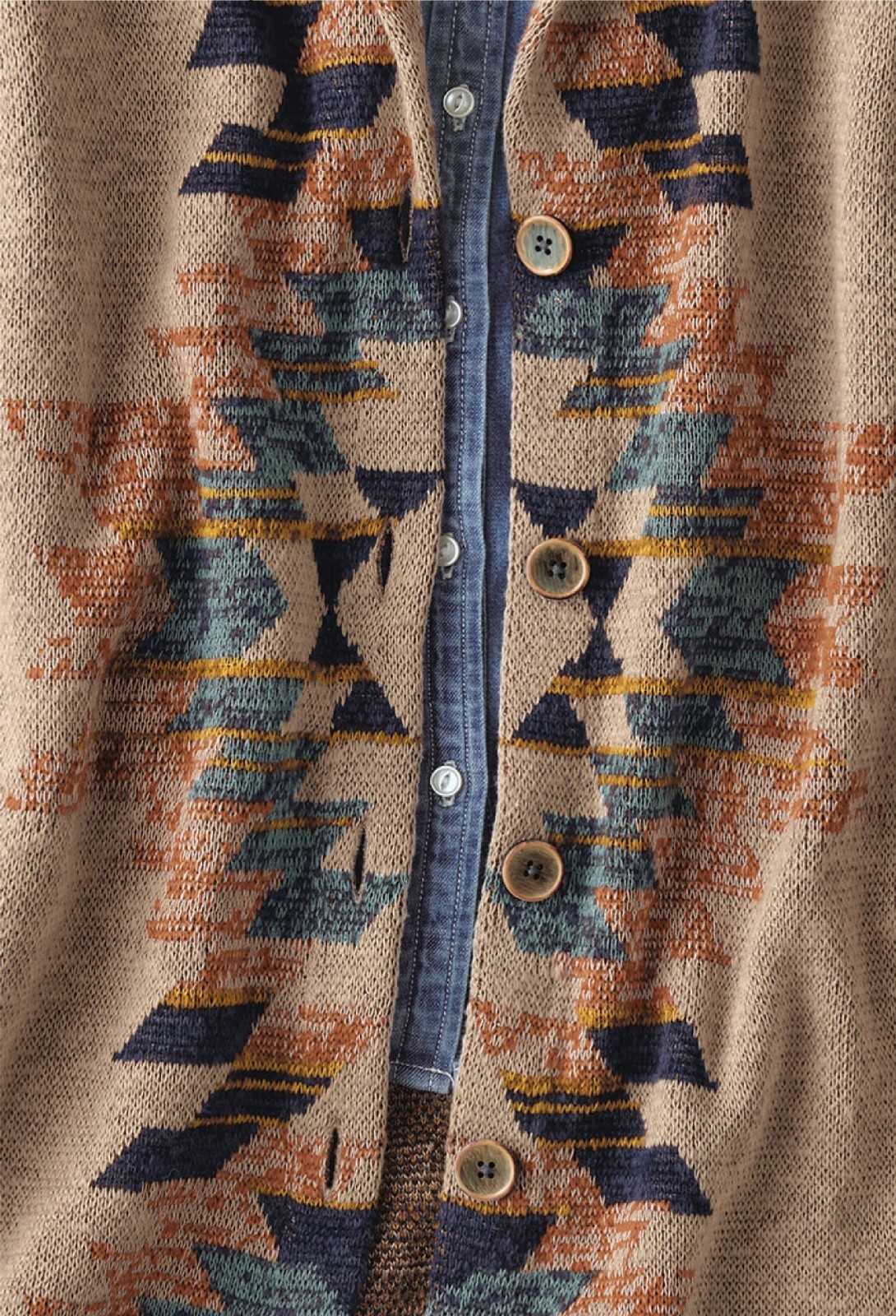 Coldwater Creek Sunset Ridge Cardigan Color Heather Oatmeal Multi Style Number: 24926 Retail : $144.95 - $159.95 . You save 50% Color : Heather Oatmeal Multi This Southwest jacquard cardigan sweater is designed with intricate mesa-inspired patterns with premium knit construction, shawl collar, and button front closure. It’s a bold layer with softness to embrace. Slightly dropped shoulders lend a casually roomy feel. Misses 30" long; Petites 28"; Women’s 31" Hits mid thigh Relaxed fit On-seam pockets Midweight 100% cotton slub Machine wash Imported