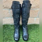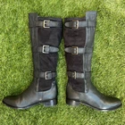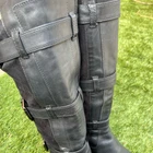 Pre-Owned Calf Length Moto Boots by Cole Haan X Nike Air Style is the Avalon Boots Color is Black Size 8.5 in women Excellent pre-worn condition. Extremely minimal signs of previous wear, some very light scuffs on the leather uppers around the toe box. The suede is super soft, no fading or rub marks anywhere. The buckles are in perfect condition, no major scratches or scuffs to the metal accents. Insides of the shoes are super clean, like new condition. Very minimal signs of wear on the bottom soles, specifically some light heel drag on each shoe. Bikercore Goth Whimsygoth Grunge Punk Emo