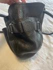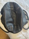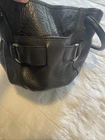 The Cole Haan Black Pebbled Leather Drawstring Hobo Bucket Bag is a stylish and spacious accessory for women. Made from high-quality leather with a pebbled finish, this large bag features a rounded trapezoid shape with a convenient magnetic snap closure. The double handles in black leather offer a comfortable carry, while the silver hardware adds a touch of elegance. Inside, the black fabric lining is complemented by inner and outer pockets, as well as a key clip for organization. Perfect for everyday use, this hobo bucket bag from Cole Haan combines fashion and functionality in one sleek design.