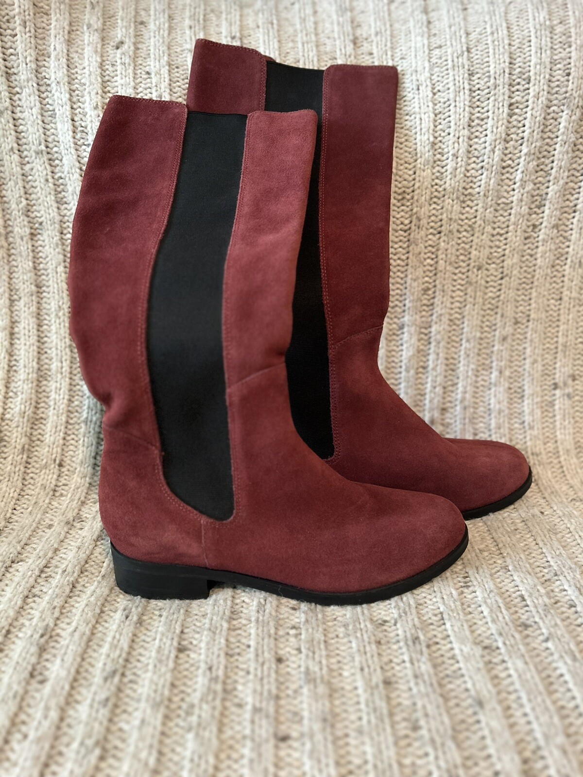 Cole Haan Nike Air Jodhpur Burgundy Suede Knee High Chelsea Style Boots Womens Size 9 B. RARE! Beautiful, classic and quality made boots from a trusted brand! Refer to pictures for color and pattern details. Let me know if you have any questions. Priced to sell! Thanks so much for stopping by.