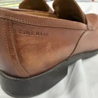 The Cole Haan Classic Hawthorne Brown Penny Loafers in size 11 for men are a stylish and versatile choice for dressy occasions. Made from 100% leather, these solid brown loafers feature a cushioned insole for added comfort. The timeless penny loafer style is perfect for the seasons of summer, fall, and spring, making them a classic addition to any man's wardrobe.