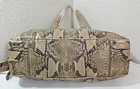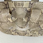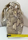 Cole Haan Faux-Snakeskin Embossed Crossbody Purse Bag Christmas Holiday Size Medium Approximate Measurements (inches): Width: 15" Height: 10.25" Depth: 6" Handle Drop: 8" Strap Drop: 17.5" to 19" This purse would make a beautiful addition to your collection! Features: -1 zippered interior pockets -2 interior slip pockets -1 keychain clip -Adjustable crossbody strap, 3 length options w/ a strap drop between 17.5" to 19" Pre-loved & in fair/good used condition. Some staining on lining in places. Some minimal signs of wear on outer surface. See photos for close ups & measurements. Ready to ship!