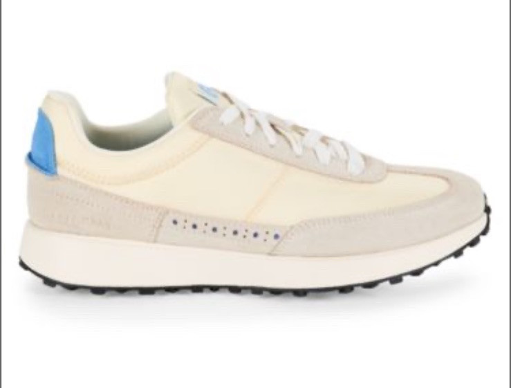 Elevate your style with these sleek Cole Haan Grand Midtown Colorblock Sneakers. The ivory and optic white suede and synthetic upper materials provide a chic and modern look, while the lace-up closure ensures a secure and comfortable fit. The rubber outsole offers durable wear and the cushioned insole and fabric lining provide all-day comfort. These low-top sneakers are perfect for any occasion, whether you're walking, going to school, or even running errands. The sleek design and solid pattern make them versatile and easy to pair with any outfit. The Cole Haan Zerogrand Journey model is a must-have for any sneaker enthusiast.