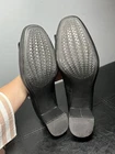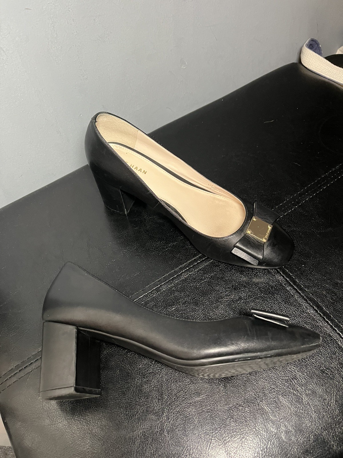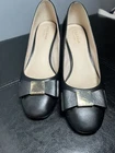 The Cole Haan heels for women in size 8B are elegant black pumps with a stylish gold bow accent. These slip-on shoes feature a round toe, mid-height block heel, and are made of leather with a cushioned insole for comfort. They are perfect for various occasions such as travel, weddings, parties, formal events, and workwear, making them a versatile and chic addition to any wardrobe. These pumps are suitable for all seasons and are sure to elevate any outfit with their timeless style and quality craftsmanship.