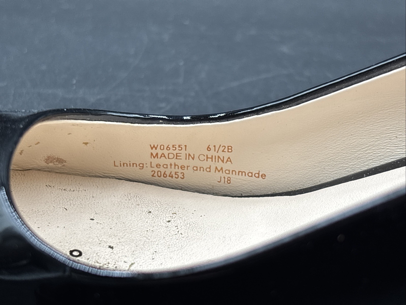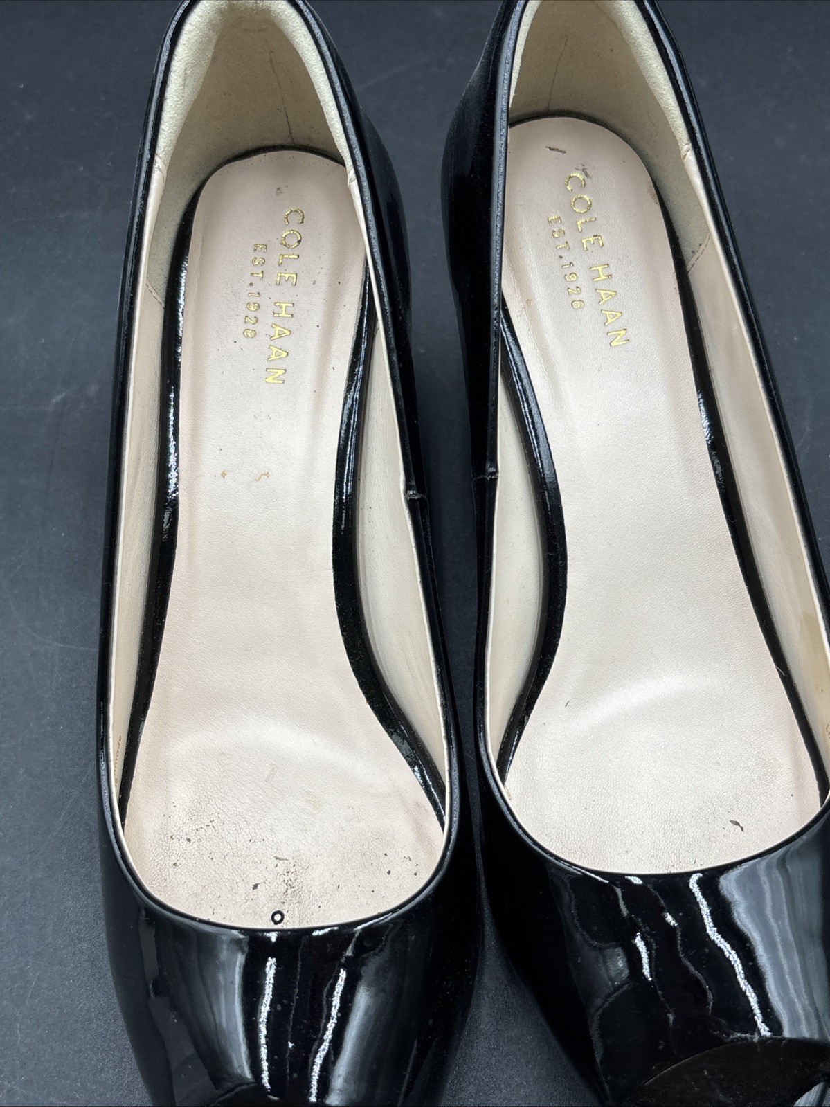 The Cole Haan Sadie OT Wedge 65mm Black Patent Peep Toe Heels in size 6.5B is a stylish and versatile option for women looking for a mid-height wedge heel. Made with patent leather and featuring a slip-on closure, these heels are perfect for casual occasions during the summer season. The peep toe design adds a touch of elegance, while the cushioned insole provides comfort for all-day wear. With a solid black color and a durable rubber outsole, these Cole Haan heels offer both style and practicality for the modern woman.