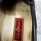 Brand: Cole Haan Style: Mens tassel kiltie loafer dress shoes with slip-on design. Line: City (per insole label). Color: Black Size on shoe: 9 D (mens). Country of manufacture: Made in Mexico (per insole stamp). Materials: Leather uppers with leather outsoles and stacked heels. Details: Moc toe stitching, fringe kiltie and tassel detail at vamp, perforated cushioned insoles, low-profile dress silhouette suitable for business or formal wear.
