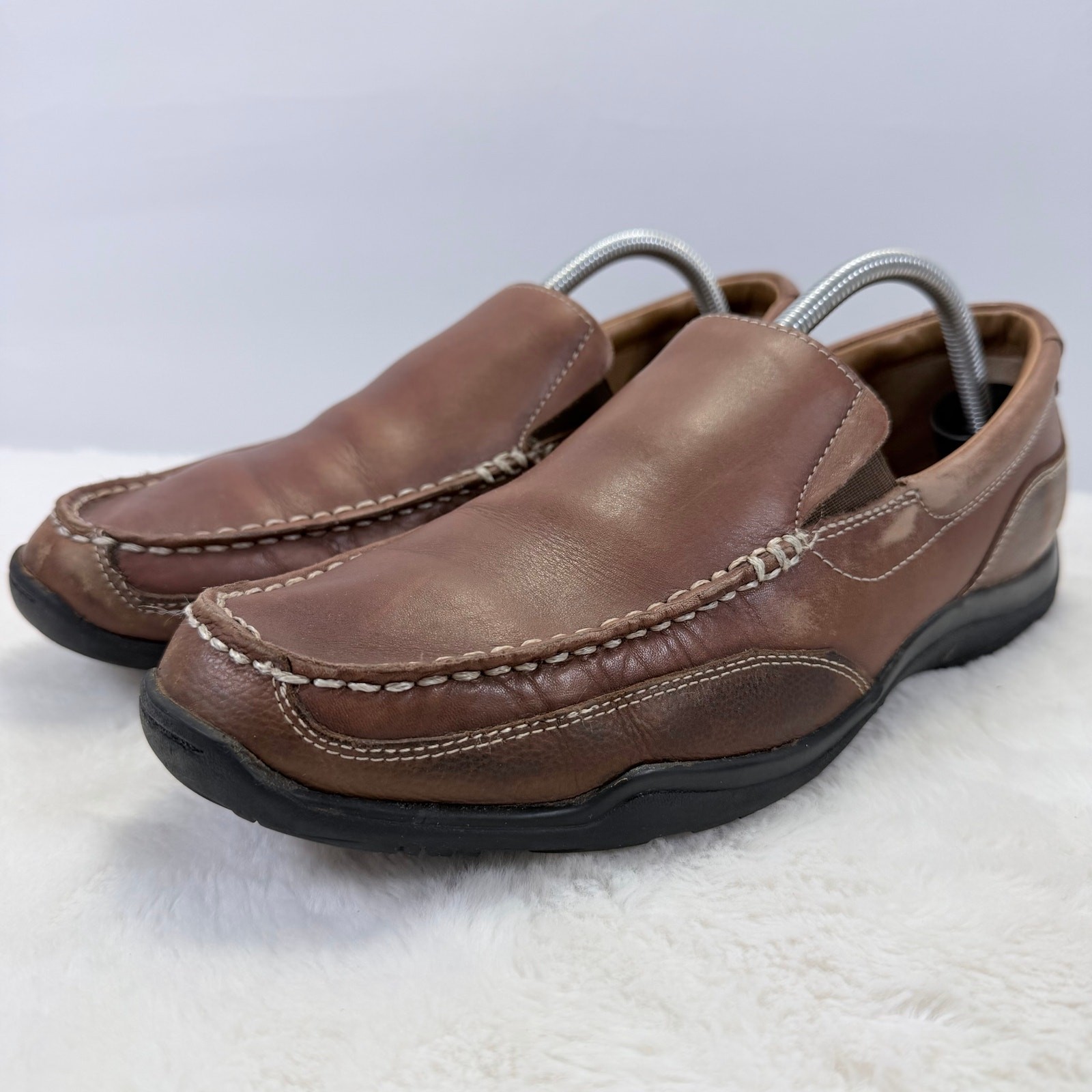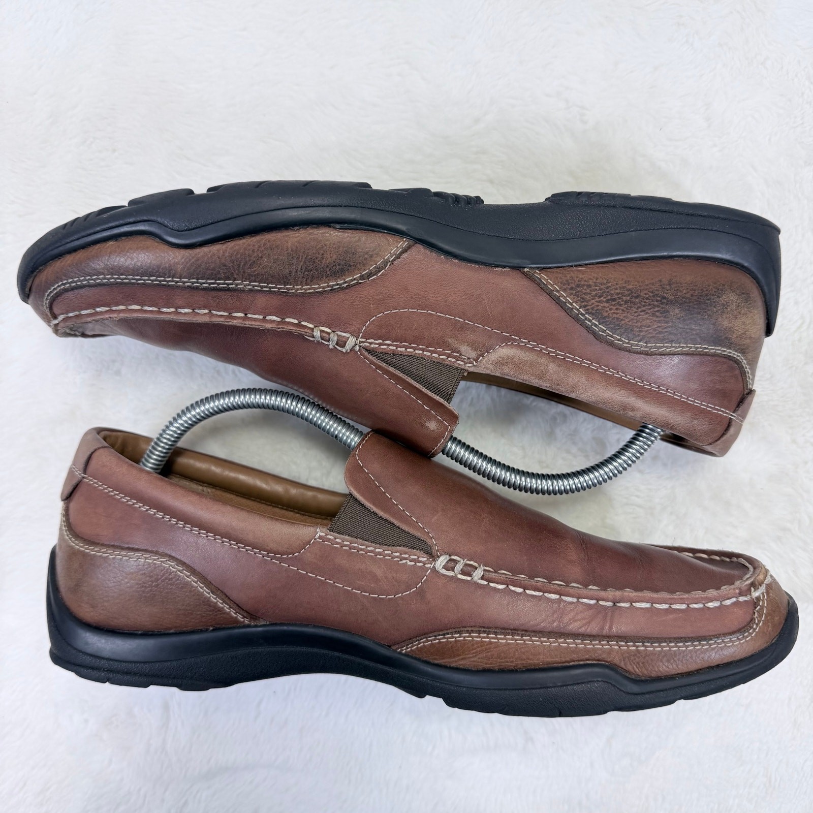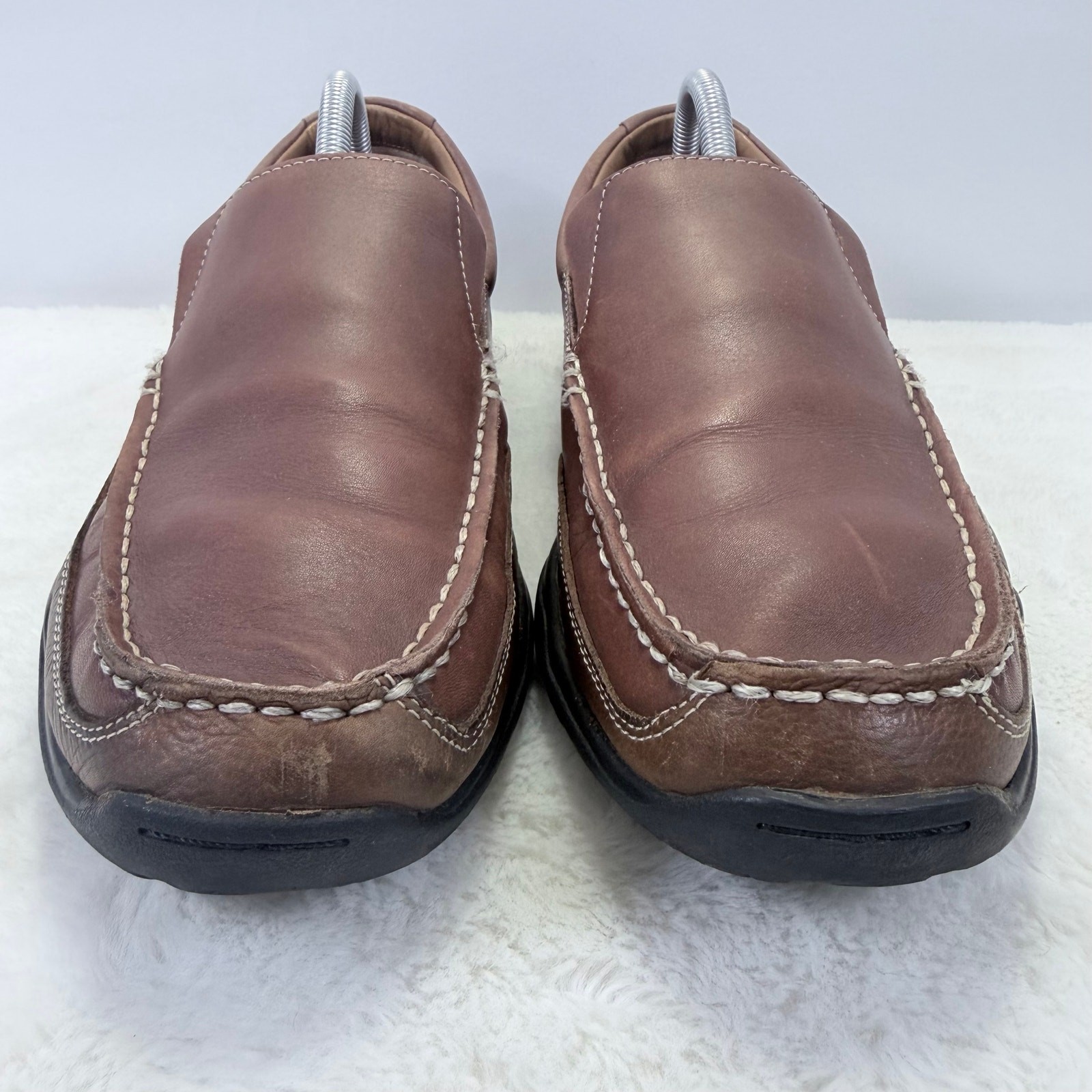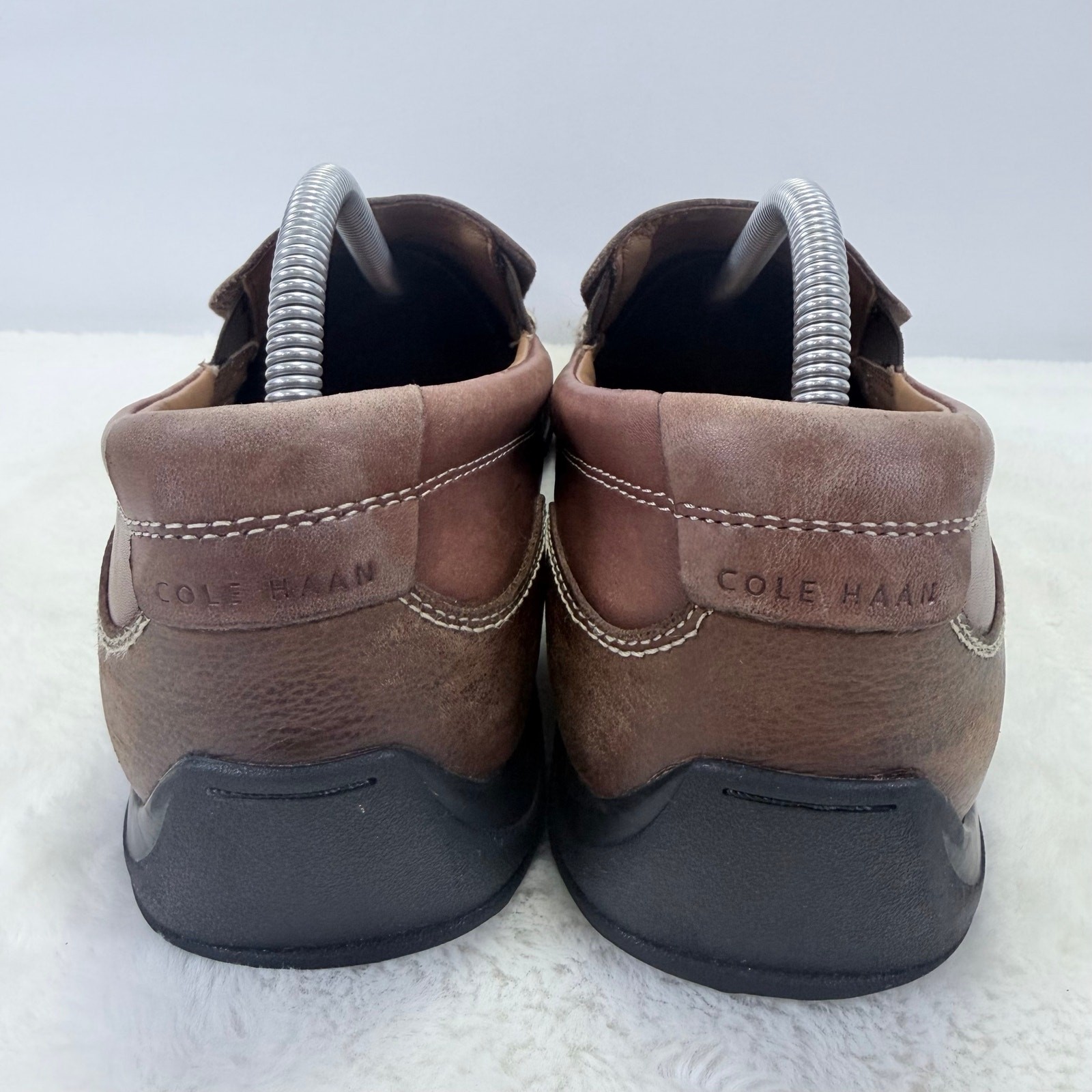 Cole Haan Tucker Venetian brown leather driving loafers, men’s US size 10.5. Classic slip-on casual shoes with rich leather uppers and moc-toe styling — perfect for everyday casual wear, driving, or business-casual outfits. These shoes are Pre-Owned and show normal signs of wear consistent with prior use such as light creasing, minor scuffs, or outsole wear. Please review all photos carefully to assess condition and details before purchasing. Returns: Returns accepted. If a return is requested due to change of mind, fit, or any reason not related to an item being not as described or seller error, the buyer is responsible for return shipping. Original shipping costs are non-refundable.