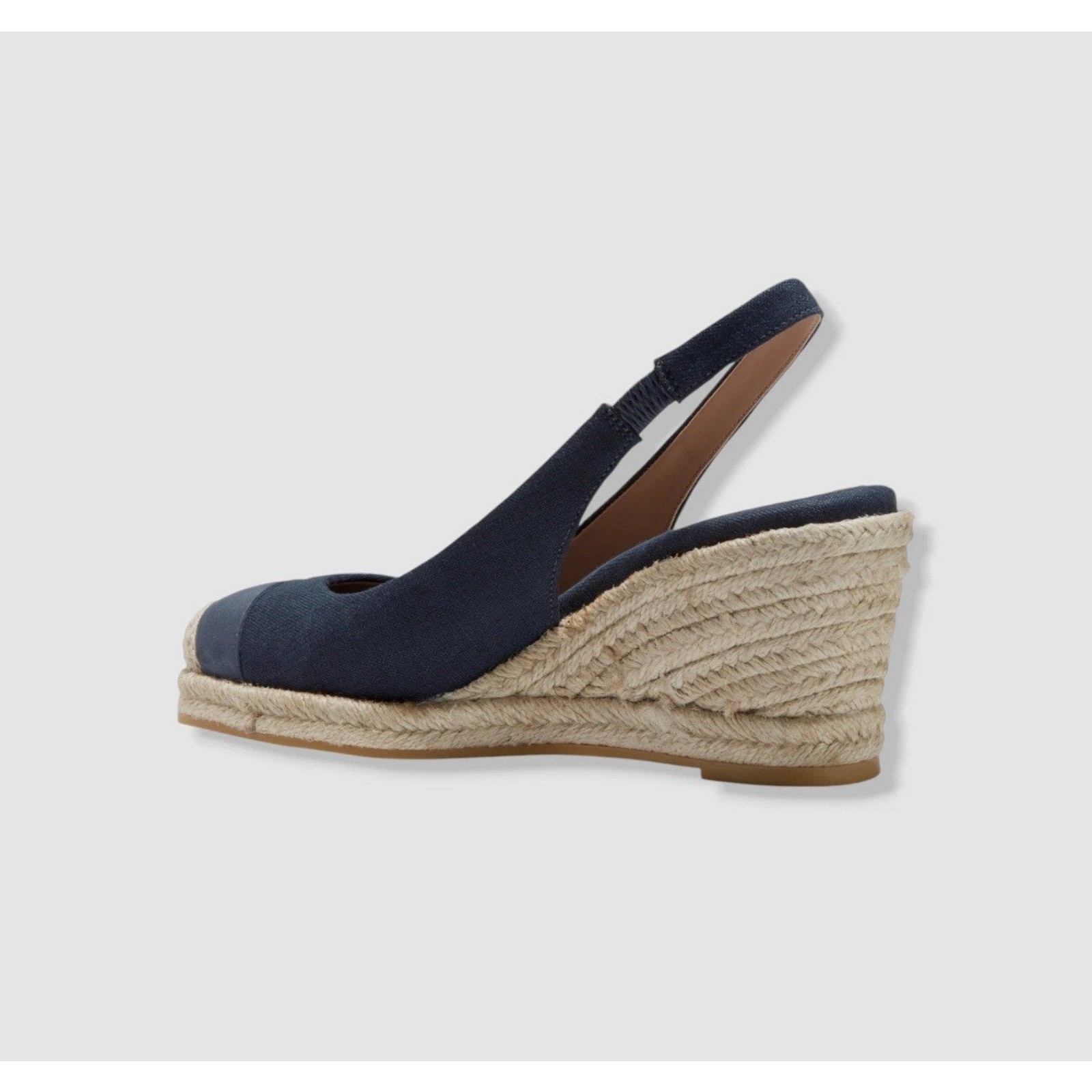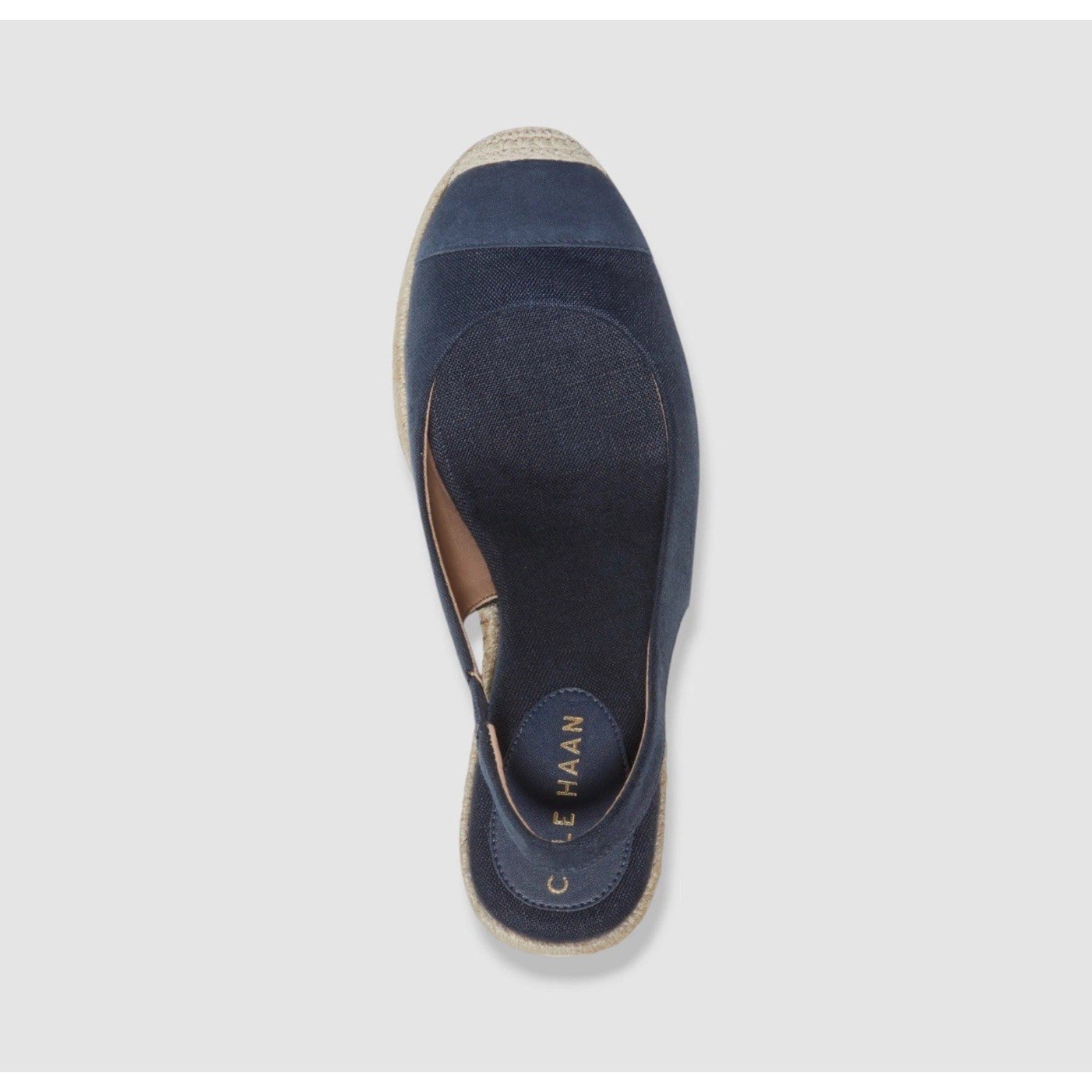 Cole Haan Women's Blue Cloudfeel Slingback Espadrille Wedge Pumps Shoes Size 7.5B Description 3" espadrille wedge heel; 1/2" platform Round-toe slip-on slingback espadrille platform wedge sandals with elastic gore Cushioned insole, arch support and lightweight, flexible sole for added comfort Fully lined footbed with GRANDFOAM technology for ultimate comfort; dual-density cored out internal wedge for a mixture of premium comfort and support where needed Manmade or cotton fabric, leather uppers; manmade lining; manmade sole Imported