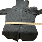 Cole Haan Women's Black Utility Windbreaker Zip Front Jacket Pockets Size S Features: Long Adjustable Cuff Sleeves Fully Lined Interior High Stand Collar Full Zip Front Closure Zip Closed Compartment under Back Collar with Rain Hood Raincoat Four Front Zippered Pockets Two Inside Zippered Pockets Machine Wash Hang Dry Material Content: 86% Polyester, 14% Nylon Measurements in photos - photographed on a size 6 mannequin for reference. Great pre-owned condition: no stains, holes, rips, or tears. Style Tags: Utility Jacket, Transitional Outerwear, Classic Style, Travel Jacket, Versatile, Spring Jacket, Fall Fashion, Minimalist Style, Rain Trench Coat, Windbreaker