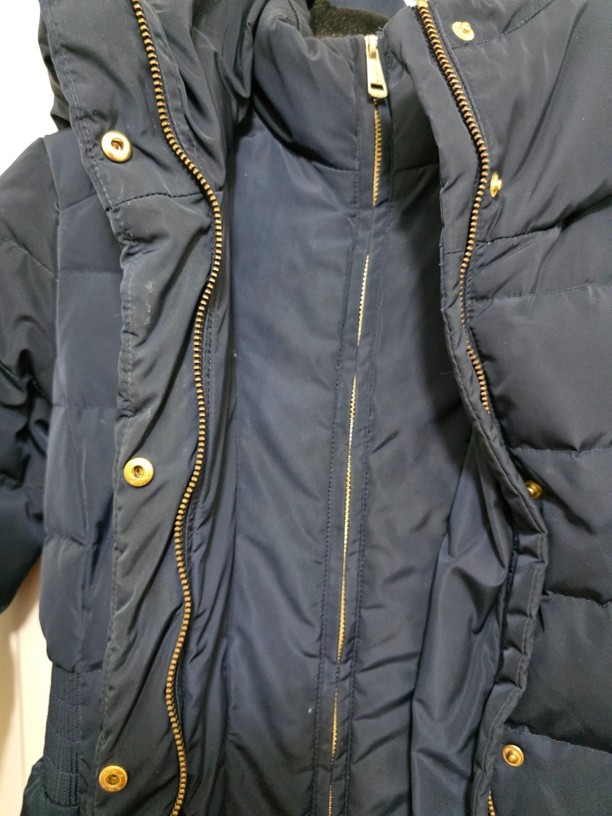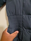 This insulated puffer coat offers a blend of style and functionality. Featuring a detachable hood, elastic waist for shape, and gold-tone accents for a polished look. • Detachable hood for versatility • Gold-toned snap and zip closure • Elastic side panels for enhanced fit • Quilted design for warmth and durability • Mid-thigh length coverage MEASUREMENTS pit to pit 17 arm 23 length 30 CONDITIONS pre owned, minor wear, no visible flaws, good conditions. see photos for mor details.