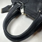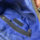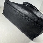 The Cole Haan Zoe Black Luxurious Leather Top Handle Satchel is a stylish and versatile handbag perfect for various occasions. Made of luxurious black leather with gold hardware accents, this medium-sized shoulder bag features a zip closure, double black leather handles, and a detachable strap for added convenience. The satchel includes inner and outer pockets for organization, a signature logo accent, and a classic blue fabric lining. This designer piece from Cole Haan is a timeless and elegant addition to any wardrobe.