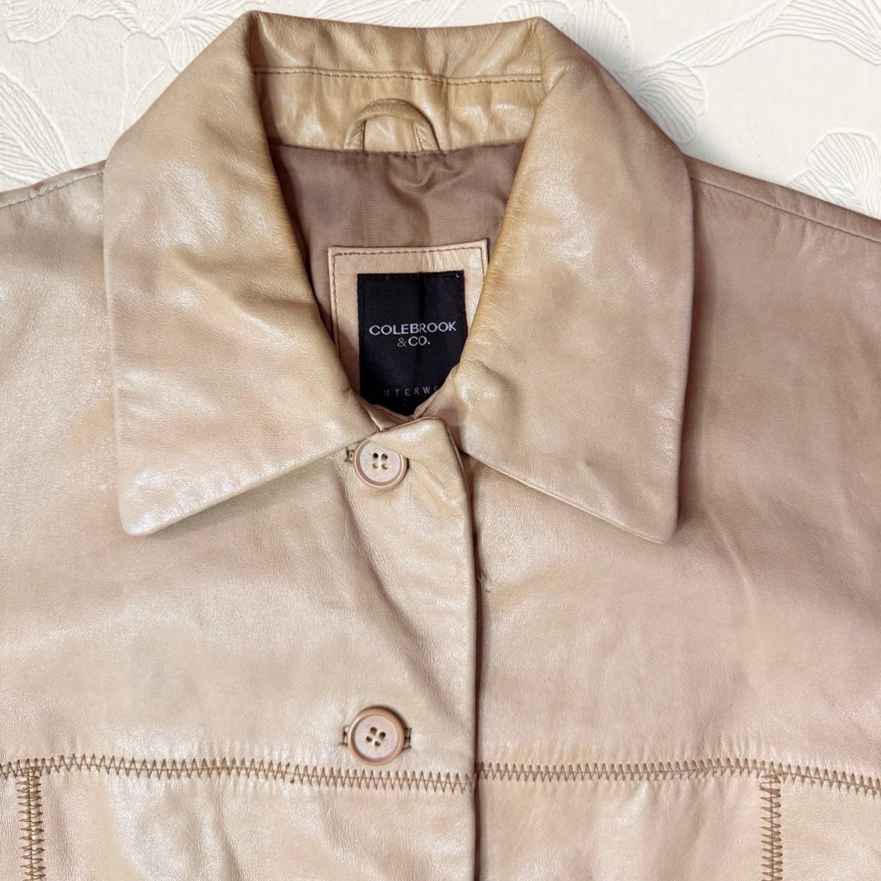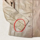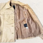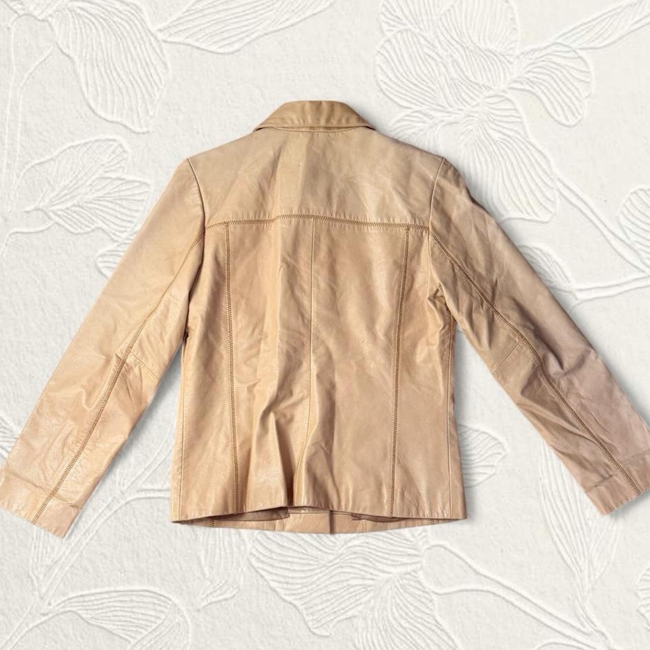 Tan leather jacket with buttons. Some minor stains please see the last two pictures, it can be cleaned. Chest: 18.5 inches (measured flat) Length: 24 inches Sleeve Length: 23.5 inches #leatherjacket #tan #casual #winterjacket #realleather