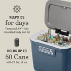 Icy beverages and shared meals, fuel the best times outdoors, and the Coleman 316 Series Wheeled Cooler is the right choice for the job. Looking for multiday ice retention? TempLock FX insulation in the lid and body really holds the cold. Heavy-duty wheels and a durable telescopic handle go the long haul with ease. And, our 316 Series is made with 15% less plastic than comparable Coleman coolers. When you need a break, the Have-A-Seat Lid supports up to 250 lbs. and has 4 handy cup holders. Want more? The tethered drainplug resists leaks, the liner resists stains, and our EZ-Clean lid makes cleanup simple. This 60-quart model holds up to 50 cans and 27 lbs. of ice, so you and your crew will stay refreshed all day. From campsite to worksite, beach to bonfire, soccer field to stadium–Coleman helps you keep your cool. Coleman Wheeled Cooler, 316 Series, 60-Quart KEEP IT COLD: Fully insulated lid and body with TempLock FX for multiday ice retention TAKE IT EASY: Heavy-duty wheels and a durable telescopic handle are built for the long haul UPGRADE: The 316 Series is made with 15% less plastic than comparable Coleman coolers LOSE THE LEAKS: Tethered drainplug resists leaks and won't get lost ENJOY A BIG SIP: Four cup holders prevent spills; each holds up to a 30 oz tumbler CLEAN UP QUICK: Stain-resistant liner & the EZ-Clean lid make cleanup a breeze TAKE A LOAD OFF: Sturdy Have-A-Seat Lid supports up to 250 lbs. GO BIG: 60-quart size holds up to 50 cans and 27 lbs. of ice