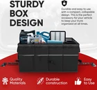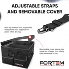 Sturdy Box Design – Fortem premium trunk storage organizer for car is reinforced with rigid base plates to support every side panel. Among car organizers and storage, ours will leave less mess to worry about with multiple side pockets and up to 3 compartments. Stays in Place – Our car trunk storage organizer has non-slip strips to prevent sliding and adjustable straps to secure to your trunk. Store small items in the tight mesh siding or pockets with lids. You can even connect 2 or more car organizers with interlocking buckles. Bonus microfiber towel included. Multifunctional – Fortem Trunk organizers and storage make car organization easy and simple. Organize a variety of products from groceries to office supplies, accessories (handbags, shoes,) or toys for kids. Consolidate the mess in your trunk and make room for your cooler or camp gear. Collapsible with Removable Lid – You can move trunk storage to the backseat, front seat, or center of your vehicle since it is collapsible to 1 compartment. The detachable lid keeps your goods out of sight for added security. One Year Warranty – No matter if it’s a large truck, SUV or sedan, this car tote is perfect for any size trunk. Your car storage trunk organizer is covered for a full year! Product Description Organize 1 Organization 2 Out of sight 3 Rugged & Sturdy 4 Space saver Compare all Sizes & Colors Removable Cover ✔ ✔ ✔ ✔ Dimensions (LxW) 20in X 14.5in 23in X 16in 29in X 16.6in 29in X 16.6in Non-Slip Bottom ✔ ✔ ✔ ✔ Adjustable Secure Straps ✔ ✔ ✔ ✔ Cooler Bag ✘ ✘ ✘ ✔