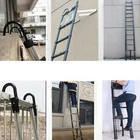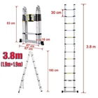 Collapsible Telescoping Ladder Aluminum Telescopic Ladders Lightweight 3.8 5M 6M (ANY QUESTIONS PLEASE CONTACT US FIRSTLY) ★Quality Warranty! US LOCAL STOCK! ★LIFETIME REPLACEMENT REFUND! ★FREE Replacement Guarantee! ★FREE Replacement! ★Replacement Guarantee! ★MONEY BACK Guarantee! ★LIFETIME MONEY BACK! ★100% GUARANTEE SATISFACTION ! ★ Max Loading: 150Kg ★ Manufactured to the highest standard, this ladder conforms to EN131 standards and is CE registered. ★ Foldable design, convenient to use and easy to carry around. ★ The ladder is highly versatile and can be used for many tasks, no matter at home or work. Invaluable around the house and work place. Silver Ladder: ★ 2.6M / 3.2M/3.8M /5M Aluminium Telescopic Straight Ladder ★ 5M(2.5M+2.5M) /3.8M(1.9M+1.9M) Aluminium Folding A-frame Ladder ★ 4.4M,5M , 6.33M A luminium Telescopic Ladder With Safety Hook --Easily stored in everywhere when ladder is closed. --Quickly and easily extends rung by rung to the required height. --Safe and compact---- The ladder comes with high quality rubber feet for extra stability and grip and stable locking key between two neighbouring steps to avoid bumping and friction. --Constructed from high quality and polished aluminium. --Lightweight yet durable and compact for easy storage and transportation. --Black anti-slip rubber sleeve on the bottom of ladder step and stable locking key between two neighboring steps to avoid bumping and friction --Highly versatile and can be used for many tasks around the home as well as for trade use. --Slight deviation may occur during measurement, please take care and thanks for your understanding --High quality foldable telescopic style ladder. ※ 2.6M Telescopic Straight Ladder: --2.6m (8ft5) foldable telescopic style climb ladder: --Number of Ladder Step: 9 --Step Interval: 30cm --Net Weight: about 6.85kg --Approx. Size: 72cm (Folded Height); 2.6m/8ft5 (Unfolded Height) ※ 3.2M Telescopic Straight Ladder: --3.2m (10ft5) foldable telescopic style climb ladder: --Number of Ladder Step: 11 --Step Interval: 30cm --Net Weight: about 8.7kg --Approx. Size: 82cm (Folded Height); 3.8m/12ft5 (Unfolded Height) ※ 3.8M Telescopic Straight Ladder: --3.8m (12ft5) foldable telescopic style climb ladder: --Number of Ladder Step: 13 --Step Interval: 30cm --Net Weight: about 10.8kg --Approx. Size: 85cm (Folded Height); 3.8m/12ft5 (Unfolded Height) ※5M Telescopic Straight Ladder: --5m (16ft4) foldable telescopic style climb ladder: --Number of Ladder Step: 13 --Step Interval: 40cm --Net Weight: about 12.3kg --Approx. Size: 94cm (Folded Height); 5m/16ft5 (Unfolded Height) ※3.8M Folding A-frame Ladder: --3.8m (1.9m+1.9m) foldable A-shaped telescopic style climb ladder: --With a safe locking mechanism --Number of Ladder Step: 6*2 --Net Weight: about 13.6kg --Approx. Size: 81cm (Folded Height); 3.8m/12ft5 (Unfolded Height) --A-shape Length: 190cm + 190cm ※ 5.0M Folding A-Frame Ladder: --5.0m (2.5m+2.5m) foldable A-shaped telescopic style climb ladder: --With a safe locking mechanism --Number of Ladder Step: 8*2 --Closed Length: 86cm --Vertical Length:5m --Net Weight: about 17.8kg --A-shape Length: 250cm + 250cm --Step Interval: 30cm ※ 4.4M Aluminium Telescopic Extension Ladder( With Detachable Hook ) - Number of Ladder Step: 15 - Step Interval: 30cm - Net Weight: about 12kg - Approx. Size: Folded Height-91cm; Unfolded Height-4.4m/14.5FT * The hook of the ladder can be hung on a pipe with a diameter of less than 7cm. ※ 5M Aluminium Telescopic Extension Ladder( With Detachable Hook ) - Number of Ladder Step: 13 - Step Interval: 39.5cm - Width: 48cm - Net Weight: about 12.3kg - Approx. Size: Folded Height-98cm; Unfolded Height-5m/16.4ft * The hook of the ladder can be hung on a pipe with a diameter of less than 7cm. ※ 6.33M Telescopic Straight Ladder with Safety Hook: --6.33m (20ft78) telescopic style climb ladder: --Number of Ladder Step: 15 --Step Interval: 30cm --Approx. Size: 109cm (Folded Height); 6.33m/20ft78 (Unfolded Height) Black Ladder: Specification: 3.2m (10.5ft) Number of Ladder Step: 11 Step Interval: approximate 30cm Net Weight: 9.3kg / 20.5LB Max Load Capacity: 150kg Package Size: 81 cm x 48 cm x 7.5 cm 3.8m (12.5ft) Number of Ladder Step: 13 Step Interval: approximate 30cm Net Weight: 11kg Max Load Capacity: 150kg Package Size: 87 cm x 49 cm x 9 cm 5m(16.4ft) Number of Ladder Step: 13 Step Interval: approximate 40cm (15.7inch) Net Weight: 12.3kg (27pound) Max Load Capacity: 330lb/150kg Package Size: 49cm x 9cm x 98cm (19.3 x 3.5 x 38.6 inch) 6.2m(20.3ft) Number of Ladder Step: 16 Step Interval: approximate 40cm (15.7inch) Net Weight: 16.3kg (35.9pound) Max Load Capacity: 330lb/150kg Package Size: 50cm x 11cm x 111cm (19.3 x 3.5 x 38.6 inch) Description: -- This is a telescoping extension ladder with detachable hook. --The hook of the ladder can be hung on a pipe with a diameter of less than 7cm. -- Max Load Capacity: 150kg/330lb. -- Anodized aluminum finish - clean to touch -- Foldable design, convenient to use and easy to carry around -- Great helper for both indoor household use and outdoor activities -- It has rubber feet fitted to protect internal flooring and detachable hook makes the ladder more stable and gives maximum safety -- Safe and Compact: black anti-slip rubber sleeve on the bottom of ladder step and stable locking HOW TO USE: 1. When you are closing the ladder, please DO NOT place any parts of your body within the rung, especially your hands and fingers. 2. If you want to use several steps as a short ladder, please open the steps from the top and keep the bottom steps folded. 4+5/5+6/6+7 Steps Multi-Purpose Aluminium A-frame Folding Step Telescopic Ladder: Feature:Telescopic Step Ladders Type:Industrial Ladders Structure: Single Straight Ladders Material: Aluminum Usage: Work Note: A. Read This Instruction Manual Carefully Before Using The Ladder B. Make sure each of the steps Full Extension when use it as Frame ladder Featur