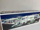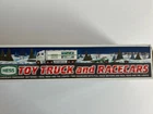 This collectible Hess Truck 2003 Toy Truck and Race Cars is a must-have for any fan of gas and oil memorabilia. The brand Hess is known for their quality products, and this one is no exception.The set comes new in box, ready to be displayed or added to your collection. This truck has only been removed from the box to take the photos. There is a slight dent on the box.