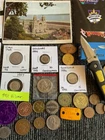 Beautiful lot 2001 S United States mint proof set with Sacajawea, 1957 FDR silver dime, one roll of wheat pennies all 1941 that is 50 pennies total. Beautiful handwritten postcard dated 1955. and so much more in this lot.