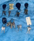 Collection of auto keys and keychains from the 60s. There are six keys with keychains and two rings of those keys. 35 keys total. Keychains that read Gurley Ford. Don Sanderson Ford. Smithsonian PC. International Harvester Leather with Eagle and leather with zodiac cancer sign. Various makes and models including Ford Chevrolet Chrysler Cadillac etc. All questions welcome. Thanks for looking.