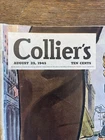 The product is a paper magazine titled "Collier's August 25, 1945" published by The Crowell-Collier Publishing Company in the United States. It is an English-language weekly publication with paid circulation and illustrated features. The magazine covers a wide range of topics including women, cars, economics, aviation, fashion, history, and more. It also includes content related to war.