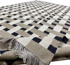 Handwoven Wool Dhurrie Rug Color Black, Cream & Beige Handmade Design Carpet Rug