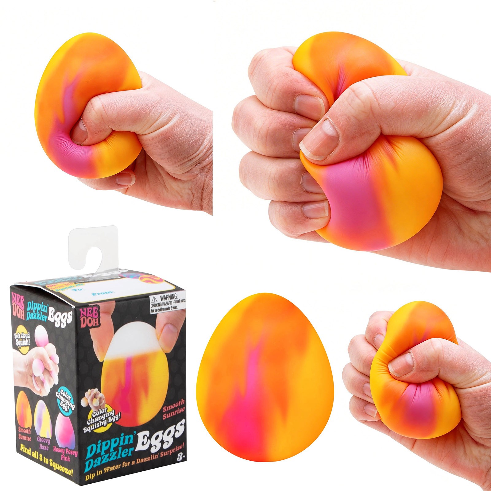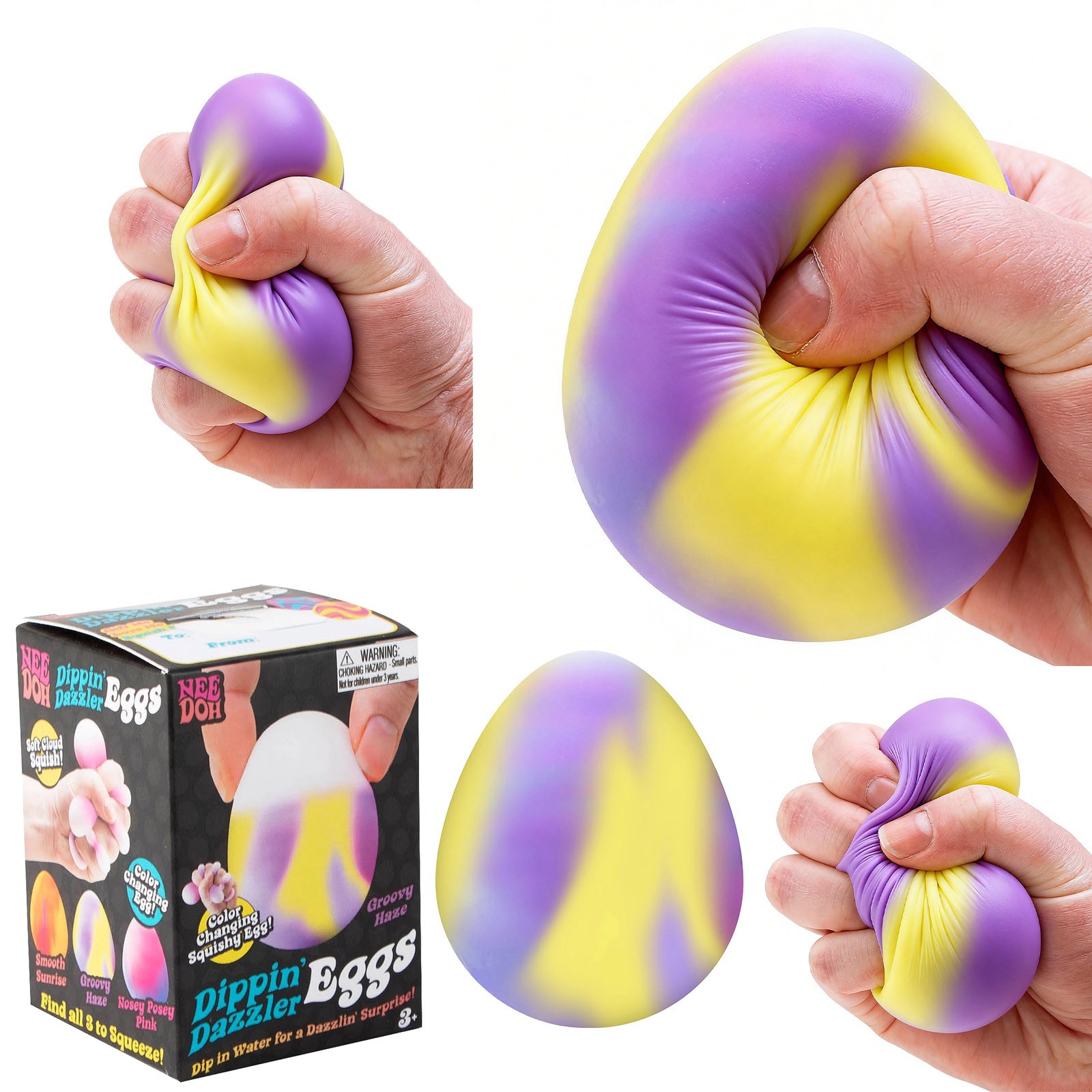Color Changing Eggs Pudding Toy Novelty Colorful Stress Relief Squishy Toy Features: Color-changing : These eggs feature exciting color-changing properties to attract children's attention and keep them entertained. Smooth and squeezeable: The smooth and squeezeable design a comfortable tactile experience. The egg you receive will randomly display of three colors. Water-activated coloring: When immersed in water, these eggs will display interesting patterns, adding more to the game. The product contains of three randomly colors. Easter sensory game: These color-changing eggs are the perfect complement to Easter activities, providing a unique sensory game experience. of three randomly colors will appear. Swirl pattern design: Each egg features a swirl pattern design, providing visual appeal and tactile comfort for children. Product Description: Color: As shown in the picture (Due to differences in monitors, there may be slight color variations in the . Please confirm that you do not mind before placing an , thank you!) Package Weight: 80 grams Package Size: 10 x 5.5 x 5.5 cm Includes: 1 x Color Changing Egg (randomly selected) (Please allow 1-3 mm error due to manual measurement. Please confirm that you do not mind before placing an .)