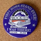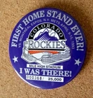 First Home Stand Ever Colorado Rockies 1993 button vs Montreal Expos. NY New York Mets. April 9 - 15, 1993 Mile High Stadium I Was There # 000368/25,000 This MLB licensed button measures about 3" in diameter. This new pin has no problems and is sold as originally sold, with no packaging. Don’t forget to click on my "Stores" link, next to my eBay name, to see other items I currently have listed for sale, or you can copy and paste this address into your browser: stores.ebay.com/highcountrycollectibles SHIPPING INFORMATION Shipping to U.S. addresses is FREE! HIGH COUNTRY COLLECTIBLES Since 1989 – A LEADER IN THE DENVER SPORTS MEMORABILIA MARKET. Check out my other auctions and listings, and keep an eye out for the different, unusual, and EXCLUSIVE items available nowhere else but from High Country Collectibles.