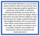 Everyone loves the beauty of old antique books but shelf space can sometimes be an issue. These vintage inspired drawer pulls feature images of beautifully aged bookstacks in an array of colorful hues. This collection of door handles add a miniature library to any room without the need for a bookshelf. Decorative knobs for a unique way to incorporate classic literature into your small space, reading nook or study area. Replace existing hardware for an interesting accent to decorate your home office cabinets, desk and furniture pieces. * Collection number: 417i13 * Wood base knob color: Black * Triple coated with a High Gloss, Clear Lacquer sealant for durability * Complimentary standard knob installation screws are included (5mm diameter x1 ¼" Length) Each knob is a one of a kind creation custom made to order for you by hand. They are created using paper graphics applied to a wood knob. Any metallic or otherwise dimensional attributes are visual only. No other materials are used in the design. Pattern placement and color will vary slightly on each one. Because the image is applied with paper decoupaged technique onto a curved knob, there will be small creases and folds at the outer edge. I do my best to smooth as much as possible, however, tiny wrinkles are characteristic of the art and add to the handmade charm. TURN AROUND: Our current estimated ship time is 1-2 weeks. We do always strive to complete handmade orders for earlier shipment than estimated but given our current order volume, it is important to allow the full estimated time for completion. Please do not use abrasive cleaners on the wood knobs, they can scratch the finish. Your handmade knobs will easily wipe clean with a soft, damp cloth.