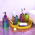 Why choose us ? As a gift for your lover : It is colorful and has a diamond-like appearance, which is like the promise of love in a confession, sparkling and promising. This is a love bathroom set. As a bathroom accessory set : it equips everything you will need to organize your toiletries,4 pcs Set of bathroom accessory set is Handmade of high quality ceramic that can easily last for longer. As an art decoration: abstract style composition camouflage design angular polygon design ,at first glance as dazzling as a diamond .take your bathroom decor to stylish new heights with this luxury bathroom accessories set, very stunning and a great touch of extra elegance to the bathrooms Exquisite Packaging , Set Includes :1 Soap Dispenser, 1 Toothbrush Holder, 1 Toothbrush Cup, 1 Soap Dish Simple and Fashion Colorized Decor:Its bathroom sets are a fashion statement,abstract style composition camouflage design angular polygon design ,at first glance as dazzling as a diamond .very stunning and a great touch of extra elegance to the bathrooms, perfect for giving as a gift for housewarming or a wedding. Rainbow Bathroom Accessories Set:Ideal decoration fits various styles, industrial style, western decor, modern style, contemporary decor, country decor. Built to Last: We have primarily used ceramic to craft the collection,So you are guaranteed of a bath set that will remain in great condition. Practical for Use: it composed of various accessories with multiple functions and user-friendly,Fill your lotion,store your things, and the overall color scheme makes your bathroom look nice.
