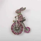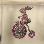 Colorful Bunny Bike Pink Sweet Vintage Brooch Luxury Rhinestone Animal Pins