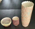 Various cupcake baking cups. These were left over from my daughter’s baking days during her high school events. All have been stored away from light and dust. Exact number of opened items have been counted. I hate to toss them so hope someone with baking skills can use them for their own purposes. Here is the count and size of each type of cup… -96, 2 1/2” Reynolds Foil -600, 2 1/2” Wilton “Celebration” -150, 2 1/2” Wilton “Halloween” -200, 1 1/2” “Fall Leaves” -50, 2 1/2” “Thanksgiving Turkey” -24, 2 1/4” “Leaves” Paper Cups Cups will not be sold separately. Sold as one unit. Please contact me if you have any questions. Thanks for looking!!!