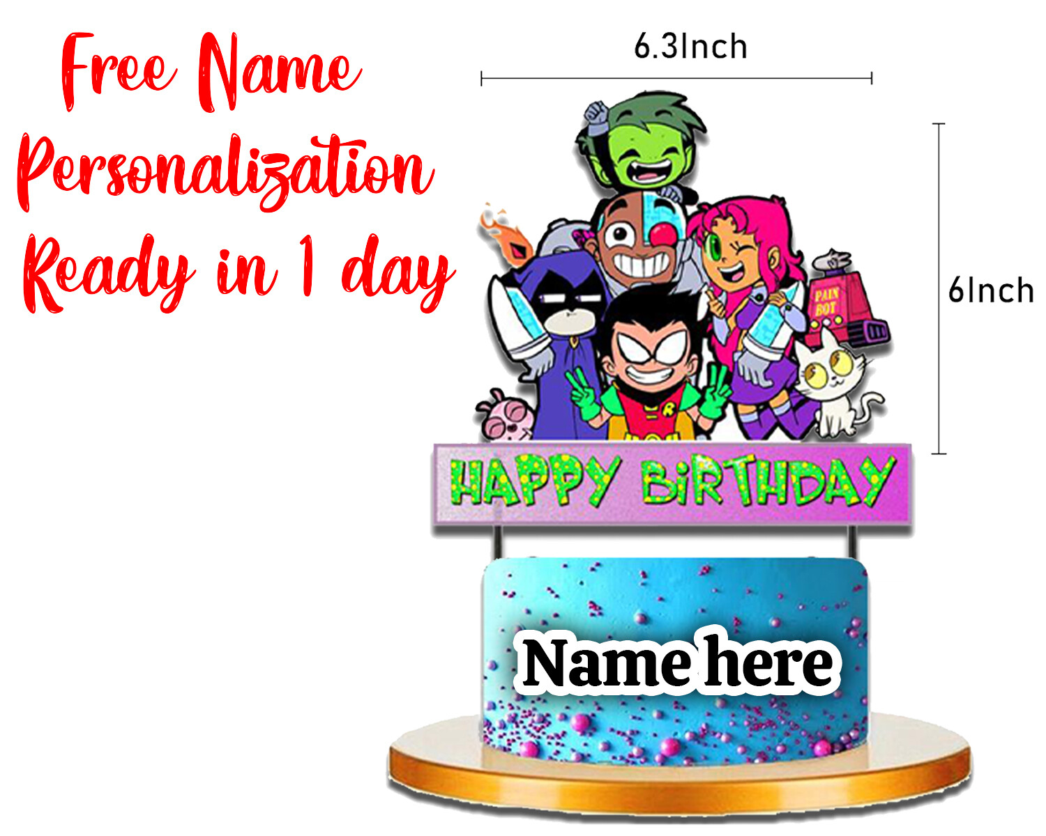 π§ Personalized Cake Topper & Cupcake Toppers - Custom Name & Age - Set of 12/24 Cupcake Toppers π§ β¨ Elevate Your Celebration with Custom Cake and Cupcake Toppers! β¨ Celebrate your special occasion with our stunning Personalized Cake Topper and matching Cupcake Toppers! Perfect for birthdays, weddings, baby showers, or any milestone event. π§ Product Details: Cake Topper: Measures 7-10" (size may vary based on the design). Includes FREE personalization with a custom Name & Age (up to 10 characters)! Cupcake Toppers: Each measures 3-4" with sturdy, eco-friendly bamboo picks. Available in sets of 12 or 24. (Note: Cupcake toppers are not personalized.) π§ Features: Cake topper personalization at NO extra cost (name & age up to 10 characters). Cupcake toppers are designed to complement your theme with a sleek and stylish finish. Bamboo picks provide stability and are environmentally friendly. Cake topper is the perfect centerpiece for cakes of all sizes. π§ Shipping Information: Processing Time: Orders are usually ready to ship within 24 hours. Standard Shipping: Ships via USPS First Class (3-5 business days) (subject to carrier delays). Expedited Shipping Options: Priority Mail: 2-3 business days Overnight Shipping: 1-2 business days (Select at checkout if you need your order urgently.) π§ How to Order: Select your cupcake topper set size (12 or 24 toppers). Add your custom Name & Age for the cake topper in the personalization box (up to 10 characters). Place your order and let us create something special for your event! π§ Perfect For: π Birthdays πΆ Baby showers π Weddings π Gender reveals π Any celebration! π§ Why Choose Us: FREE personalization for the cake topper. Beautifully crafted with high-quality materials. Eco-friendly bamboo picks for a sustainable touch. Fast processing and multiple shipping options for your convenience. β¨ Make your desserts unforgettable with our custom toppers! β¨