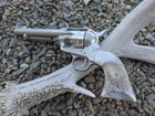 Colt SAA Elk Antler Grips Superior Custom Build and Quality Handmade in USA Elevate the look and feel of your Colt Single Action Army (SAA) revolver with our exquisite elk antler grips. Crafted for style and comfort, these grips provide a unique and natural aesthetic that enhances the classic appeal of your firearm. Compatibility: These grips are designed specifically for the Colt Single Action Army revolver. Due to variations in manufacturing tolerances over the years, some fitting or minor modification may be necessary to achieve the perfect fit for your specific model. The grips are showcased here on a 1891 First Generation Colt for reference. Included with Purchase: Grip screw provided for easy installation. Shipping & Guarantee: Fast 1 Business Day Turnaround: We know you're eager to enhance your pistol, so we ship all orders within 1 business day. Free Domestic Shipping: Shipping within the U.S. is on us, at no additional cost to you. Expedited Shipping Options: Need your grips faster? Choose an expedited shipping option at checkout. 30-Day Money-Back or Replacement Guarantee: All domestic orders include a 30-day money-back or replacement guarantee, with free return shipping covered by us. Lifetime Warranty: We stand by the quality and craftsmanship of our products, which is why we offer a Lifetime Warranty on all items. If your product experiences any defects in materials or workmanship at any point, we will repair or replace it free of charge. This warranty ensures you can purchase with confidence, knowing your item is built to last. For warranty claims, simply contact us, and we'll be happy to assist you. If you have any questions or special requests, please don't hesitate to reach out. We're happy to assist!