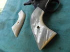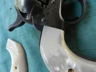 These are 100% natural, genuine MOP grips, fitted to a Colt SAA made 1905, so they will fit 1st and 2nd gen revolver. Many times the locating stud will be different from one Colt SAA to another, but fitting is easy when the locating hole gets elongated. NEVER force grips like this on a frame they will break! they should drop on easily. no screw included if I can find one I will include it, no promise..You are buying grips, not a gun as pictured, gun not for sale! Photos of gun shows the fit! Rare that I get me hands on these as the oceans are polluted and shells don;t grow big enough to get enough material to make grips. Sorry, NO Foreign Sales.. NO EXCEPTIONS!!!! Check my inventory for unusual and rare gun parts and other items. I work hard to find unusual items, and try to keep the price affordable. My descriptions are what I see, good , bad, ugly, etc. when listing. Rarely do I miss something in listing. If you buy and item and are not satisfied let me know immediately rather than leave negative feedback, we can come to some arrangement that will make you happy. I describe items to the best of my ability, however, sometimes it’s a good guess, as I don’t take things apart and sell, I find huge quantities of stuff from other people, not described by them. I think that several photos and several measurements should work for you. If you’re not sure an item will fit, best to not buy. All listings have a return privilege. Sometimes I travel for my job and I’m not here for three or four days. I ship as soon as I can but not always immediately. Please be patient. Thank you for having confidence in me and bidding