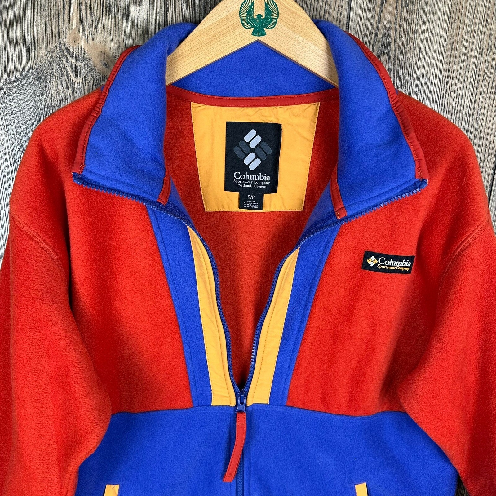 Columbia NWT Backbowl II Fleece Jacket Full Zip Color Block Red Blue Yellow Small. New with tags with no flaws! $90 Retail Retro vibes meet modern comfort in this Columbia Backbowl II Fleece Jacket. A vibrant color block design in red, blue, and yellow makes a bold statement, while the full zip front offers versatile layering options. The cozy fleece material provides warmth and softness, perfect for chilly days. The jacket features a stand-up collar for added protection and convenient hand pockets for storing essentials. This eye-catching fleece is ideal for outdoor adventures, casual weekend outings, or adding a pop of color to your everyday wardrobe.