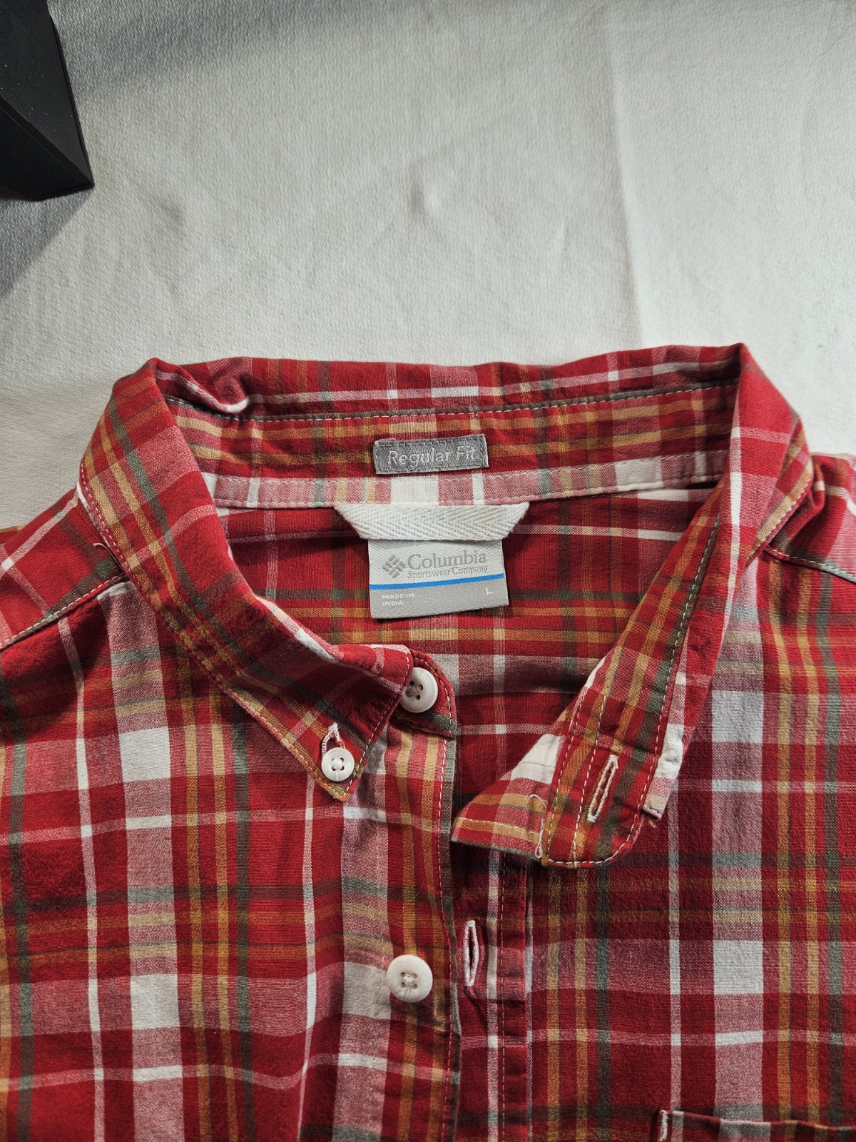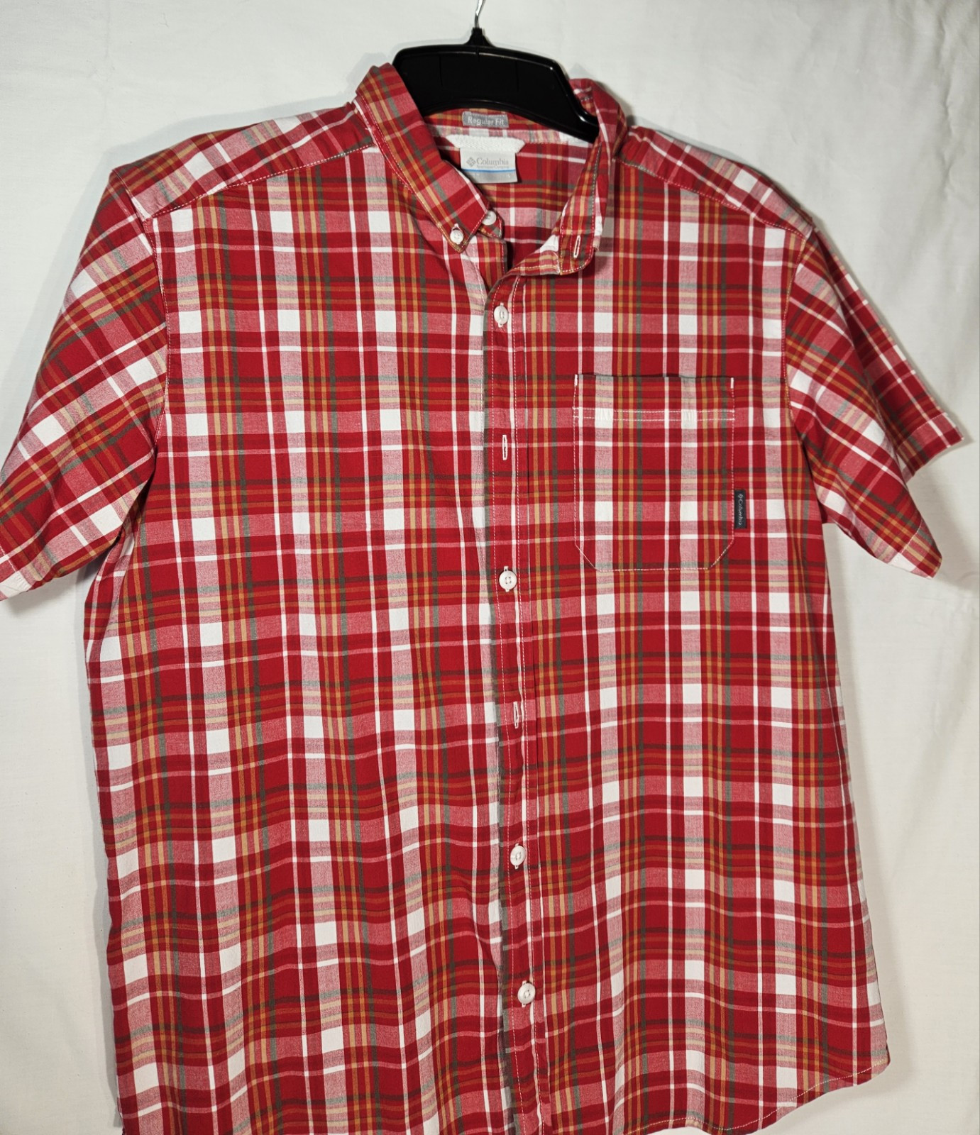 Columbia Button Down Shirt Mens size XL Red Plaid Short Sleeve