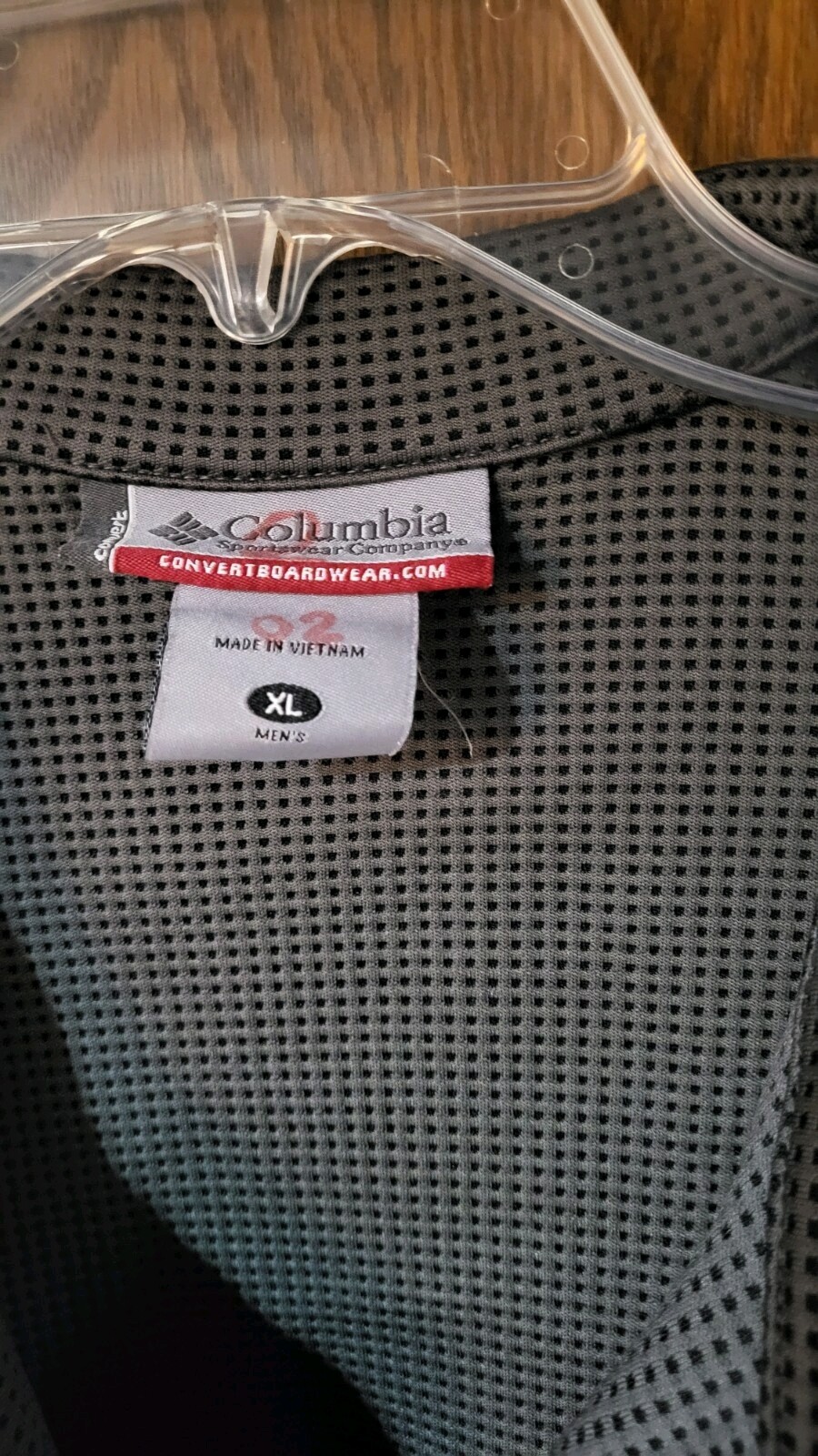 The "CONVERT by COLUMBIA" warm jacket in size XL is a black fleece body with set in raglan grey waffle knit sleeves jacket designed for men. It is lined with the grey waffle knit and features a cotton blend outer shell. The jacket has a full zip closure and convenient pockets for storage. With its combination of style and functionality, this jacket is a versatile option for staying warm and comfortable in colder weather. Only worn one time, it was too large.