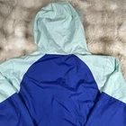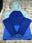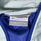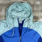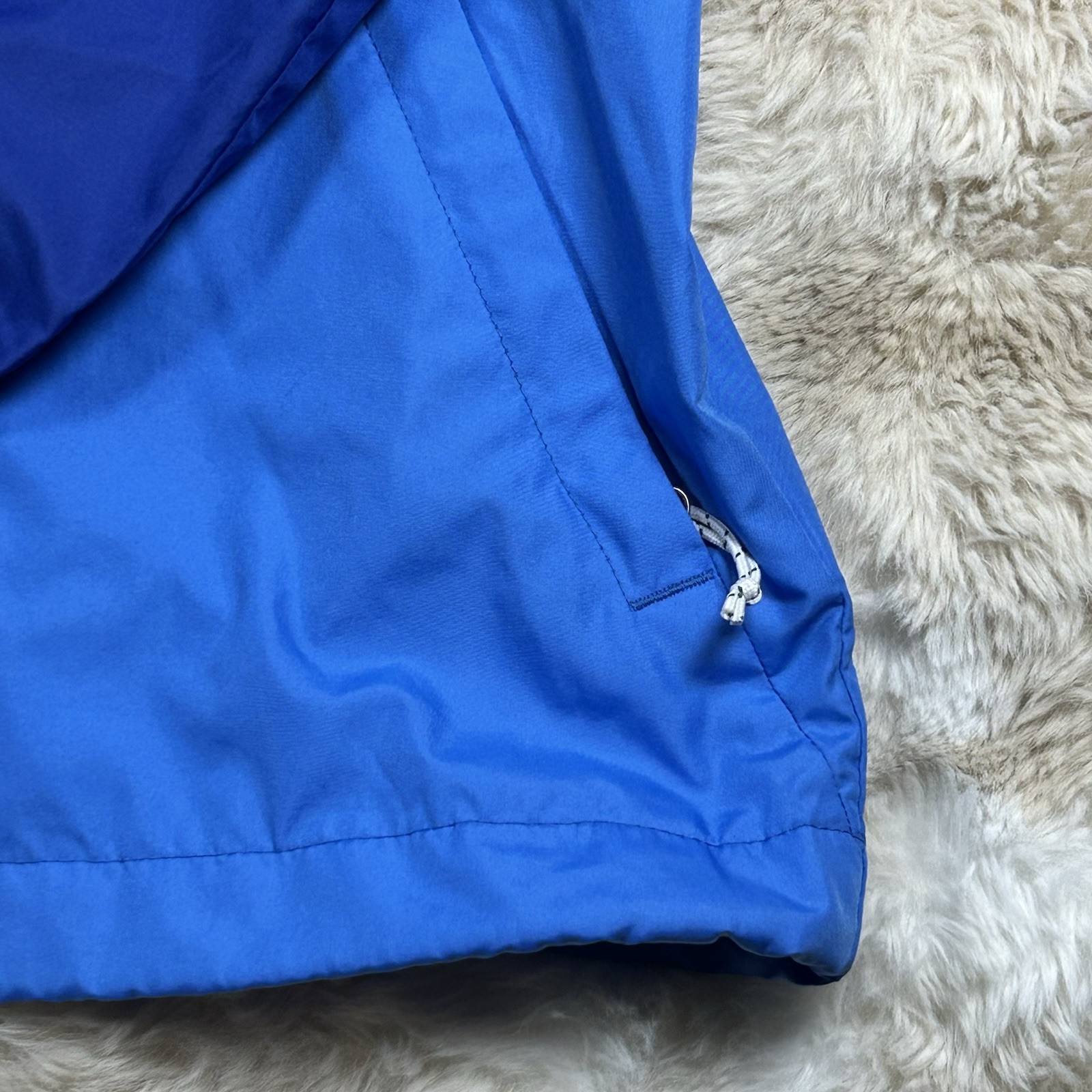 This Columbia Jacket for women in size XL is a stylish and functional blue hooded rain windbreaker. Made with a durable nylon outer shell, this mid-length jacket features a full zip closure and comes in a solid gray color with zipper accents and the Columbia logo. Perfect for fall and spring seasons, it is lightweight and designed with pockets for added convenience. With a hood for extra protection, this shell-style jacket from Columbia is a must-have for any woman looking for a practical and fashionable outerwear option. Pit to pit measures 23 inches Shoulder to hem measures 28 inches
