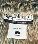 The Columbia Fur Inside Zip Up Jacket for women in size L is a stylish and cozy outerwear piece perfect for the winter and fall seasons. Made with lamb wool outer shell material and faux fur lining, this short-length jacket features a solid gray color and a full zip closure with zipper accents. With long sleeves and a regular size fit, this basic jacket from Columbia is both practical and fashionable, making it a must-have for any woman's winter wardrobe. Check pictures for condition and measurements for size.