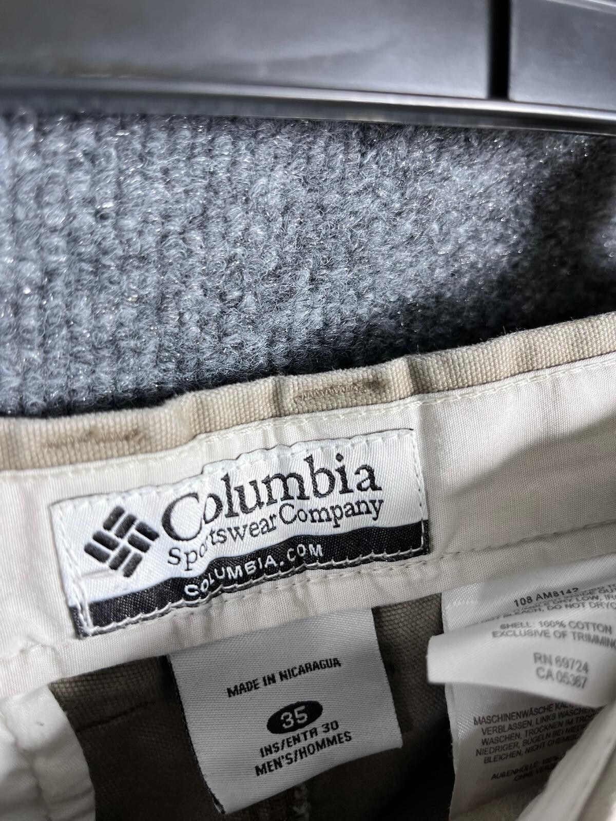 These Columbia Men's Cargo Pants are made of 100% cotton canvas in a beige color. They feature a solid pattern with a zip and button closure, and straight leg style. The pants have a regular fit and are available in size 30 with a waist size of 35 inches. The pants are perfect for travel or casual occasions, and have multiple pockets including cargo pockets for added convenience. They are machine washable and made with easy care fabric. The pants also feature accents such as a button, zipper, and logo. These classic 80s and 90s style pants are perfect for any season, whether it's winter, summer, fall, or spring.