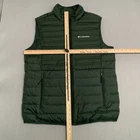 The Columbia 650 Down Puffer Vest for men in size Large is a stylish and practical choice for various occasions. Made with a polyester outer shell and insulated with 650 duck down feathers, this vest provides warmth and comfort in cold temperatures. The full zip closure and quilted design add a touch of style, while features like zipped pockets, lightweight construction, and packability make it convenient for travel and outdoor activities. With a classic fit and stand-up collar, this Columbia vest combines functionality with a timeless outdoor aesthetic. Beautiful and versatile puffer vest that can be used for multiple purposes across many environments.