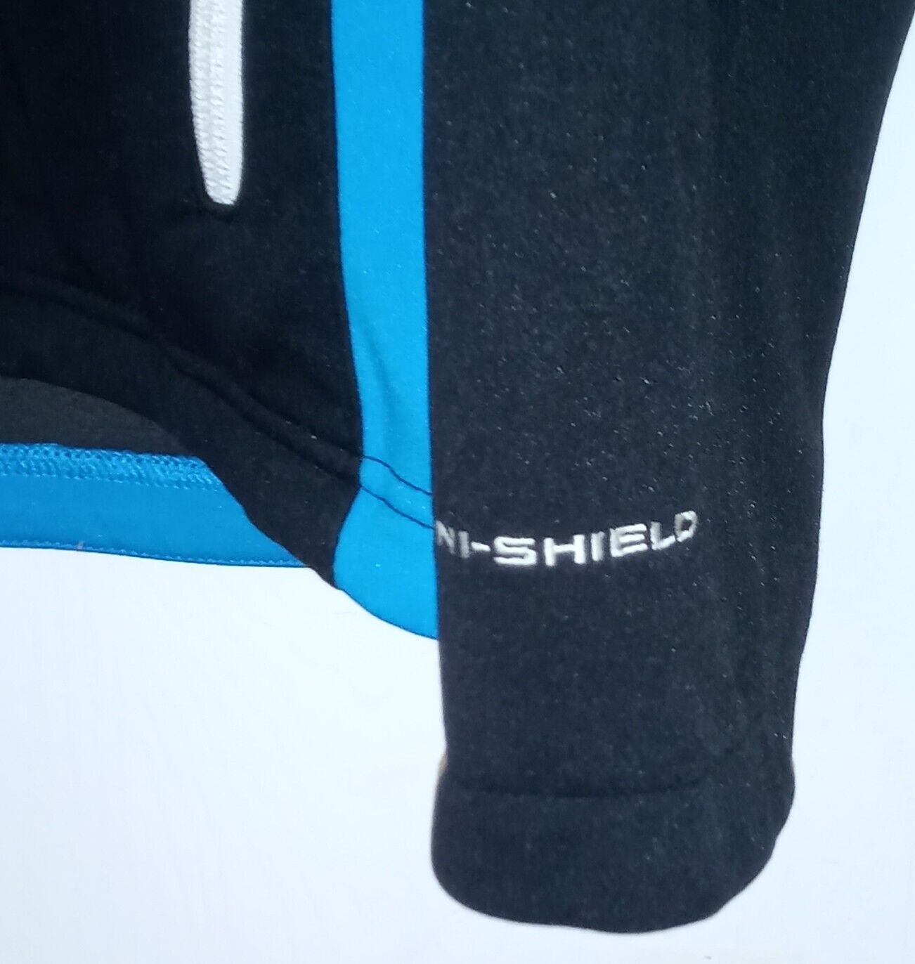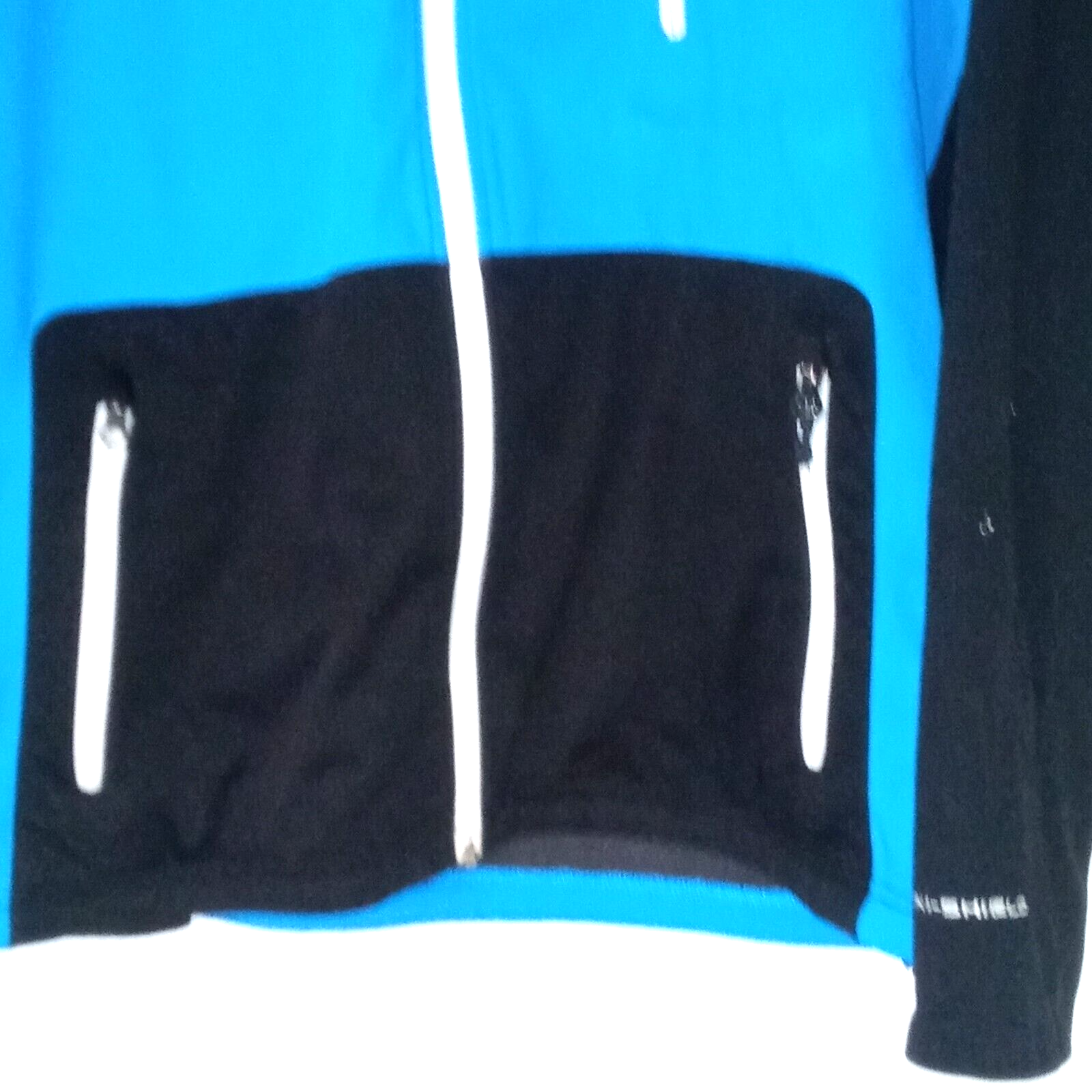 Columbia Jacket Men Large Blue Black Fleece Lined Omni shield Full Zip Stand Up Collar Right Chest Pocket 2 lower front pockets